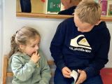 Puis, les enfants ont été répartis dans la classe des Petits et dans celle des CM1, chaque CM1 ayant préparé la lecture d’un album adapté aux Petits, qu’il devait lire à un enfant. Ce fut une belle expérience car des deux côtés il y avait des appréhensions qui ont vite été balayées. Nous essayerons de renouveler l’expérience régulièrement dans l’année.